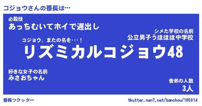 | 意味不明あだ名 | 『ペロリンコジョウ』『永久保存コジョウ』 |