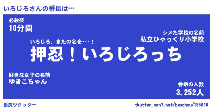 | ファンタジー風あだ名 | 『イロフェル』『エターナルイロジロー』 |