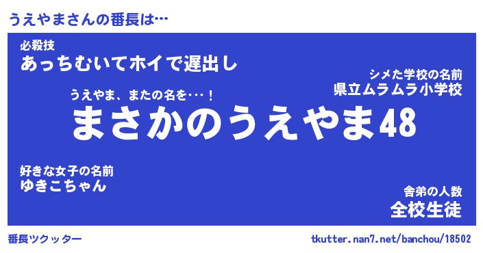 | 伝説のあだ名 | 『伝説のスナイパーうえやま』 |