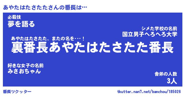 | ヒーロー風カッコイイあだ名 | 『スーパーアヤタハタサタタ』 |