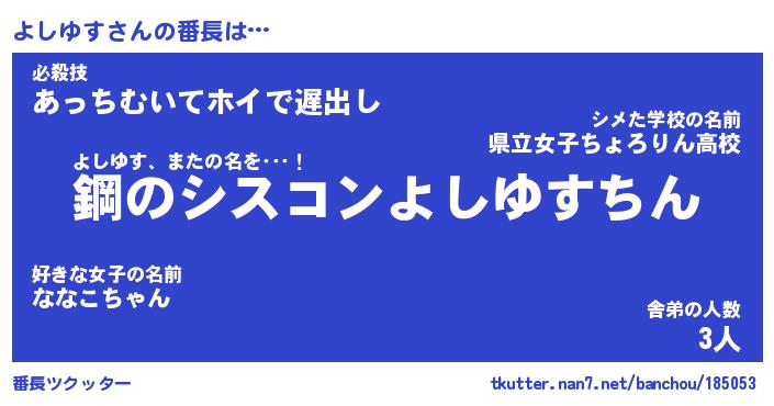 | 意味不明あだ名 | 『ペロリンよしゆす』『永久保存よしゆす』 |