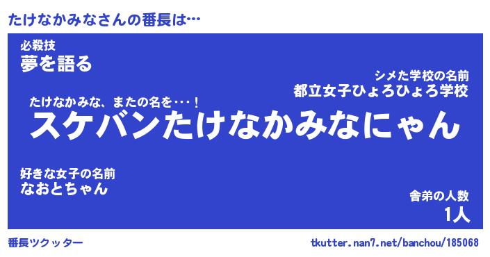 | 肩書あだ名 | 『たけなかみな店長』『たけなかみな先生』 |