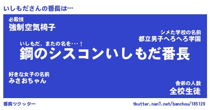| ヘコむあだ名 | 『いしにゅー』『つくし』『いしを』 |