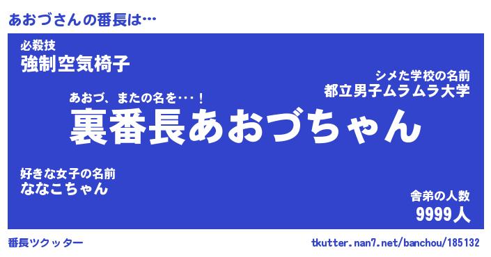 | ポケモン風あだ名 | 『アオチュウ』『アオヅダネ』 |