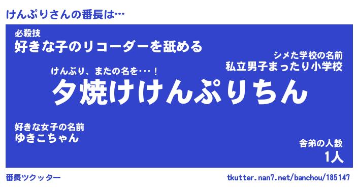 | 意味不明あだ名 | 『ペロリンけんぷり』『永久保存けんぷり』 |
