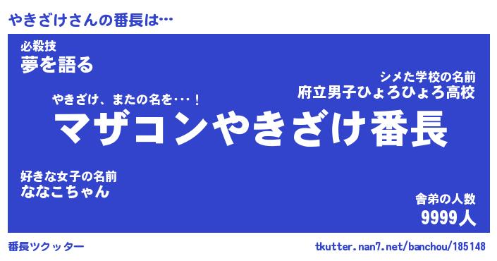 | 欧米人風あだ名 | 『マイケルやきざけ』『ウサインやきざけ』 |