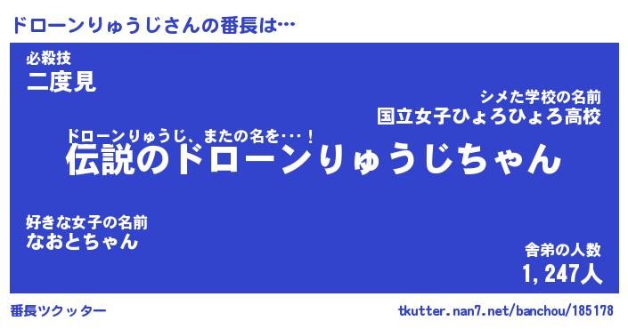 | 伝説のあだ名 | 『伝説の竜騎士ドローンりゅうじ』 |