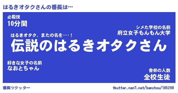 | 伝説のあだ名 | 『伝説の竜騎士はるきオタク』 |