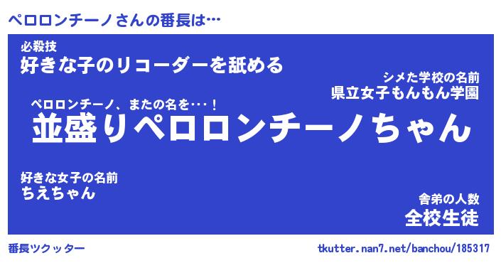 | 意味不明あだ名 | 『ペロリンペロロンチーノ』 |