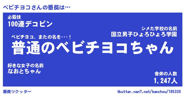| ヒーロー風カッコイイあだ名 | 『スーパーベビチヨコ』『銀牙騎士ベビ』 |