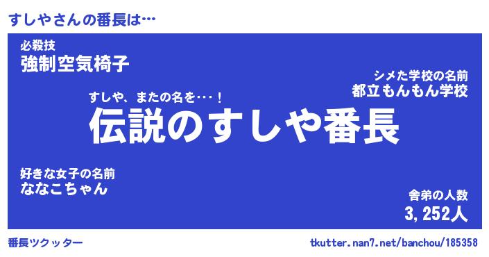 | 伝説のあだ名 | 『伝説のスナイパーすしや』 |
