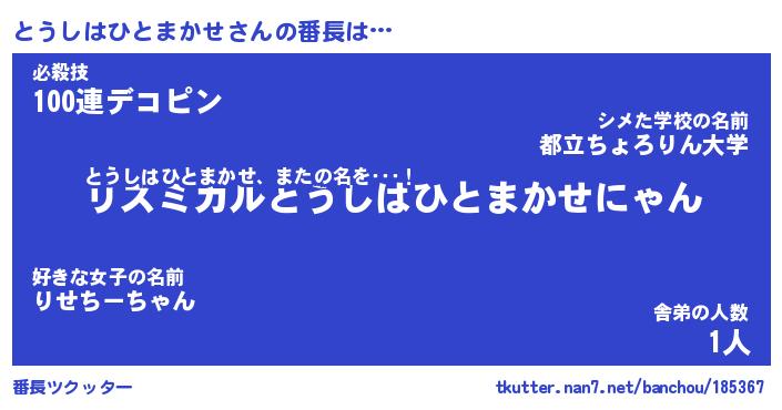 | ポケモン風あだ名 | 『トウチュウ』『トウシダネ』 |
