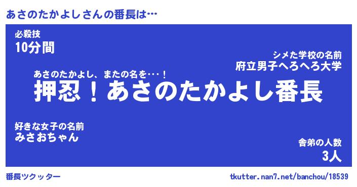 | 肩書あだ名 | 『あさのたかよし御曹司』 |