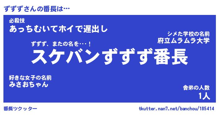 | ポケモン風あだ名 | 『ズズチュウ』『ズズズダネ』 |