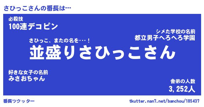 | ピコ太郎風あだ名 | 『サコ史郎』『ピサ二郎』『サヒ六郎』 |