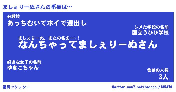| 男性向けラノベタイトル風あだ名 | 『ましぇりーぬの憂鬱』 |