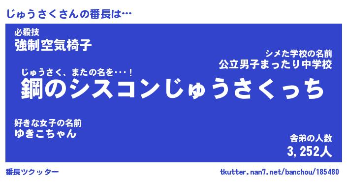 | 伝説のあだ名 | 『封印されしスナイパーじゅうさく』 |