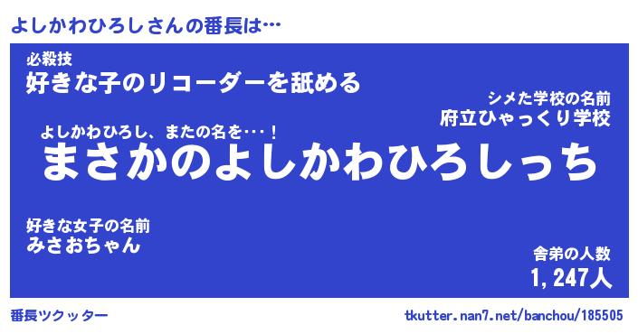 | 肩書あだ名 | 『よしかわひろし店長』 |