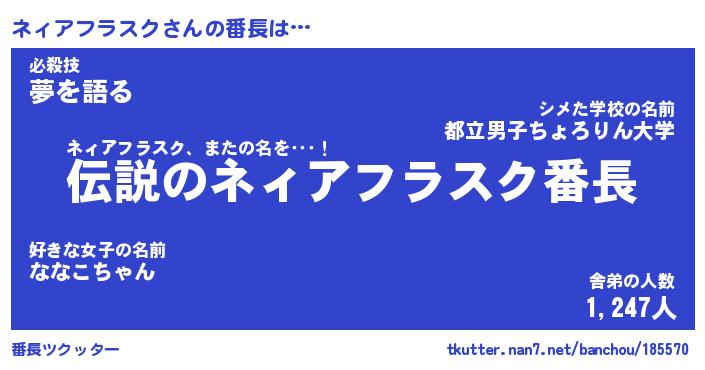 | ヘコむあだ名 | 『ネィにゅー』『豆乳』『ネィぷりん』 |