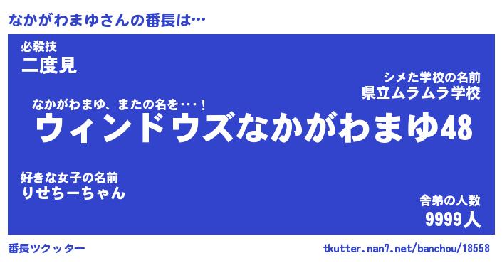 | ヒーロー風カッコイイあだ名 | 『スーパーナカガワマユ』『幻影騎士ナカ』 |
