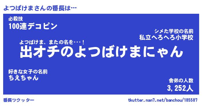 | 伝説のあだ名 | 『伝説のスナイパーよつばけま』 |