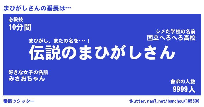 | 伝説のあだ名 | 『伝説のスナイパーまひがし』 |