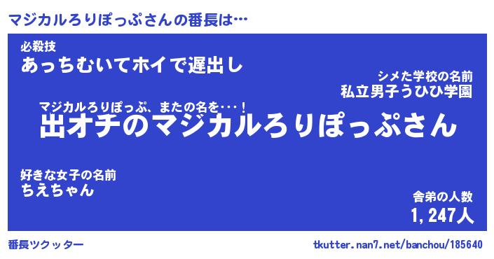 | 伝説のあだ名 | 『伝説のスナイパーマジカルろりぽっぷ』 |