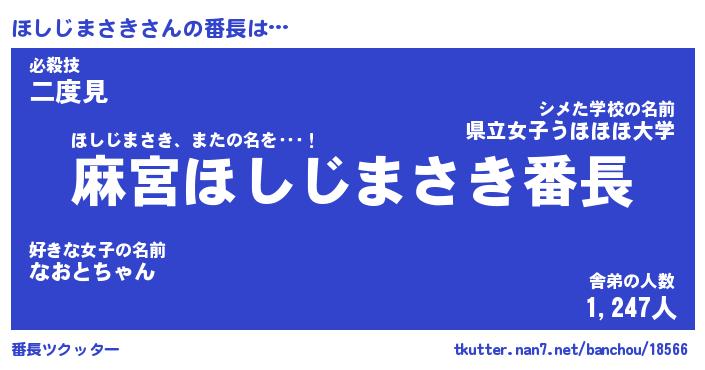 | ヘコむあだ名 | 『ほしもー』『つくし』『ほし太郎』 |