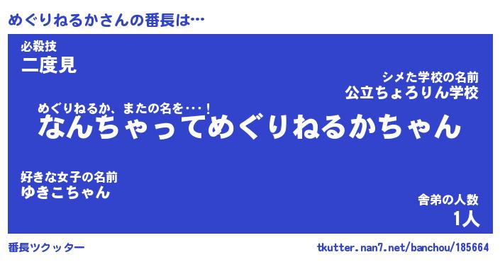 | 伝説のあだ名 | 『伝説のスナイパーめぐりねるか』 |