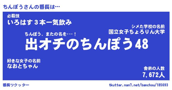 | 意味不明あだ名 | 『ペロリンちんぽう』『永久保存ちんぽう』 |