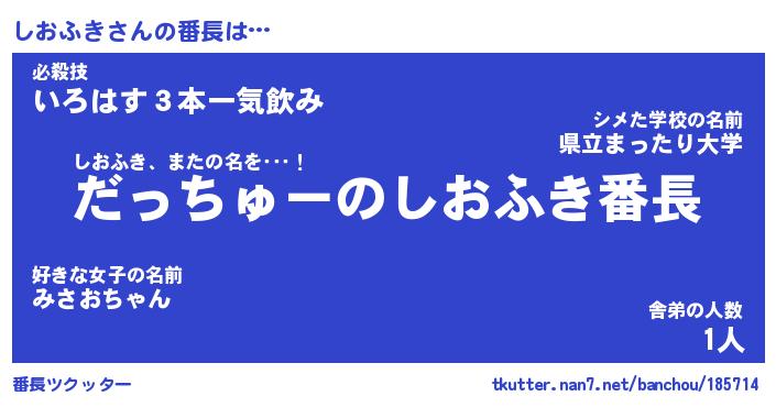 | 意味不明あだ名 | 『ペロリンしおふき』『永久保存しおふき』 |