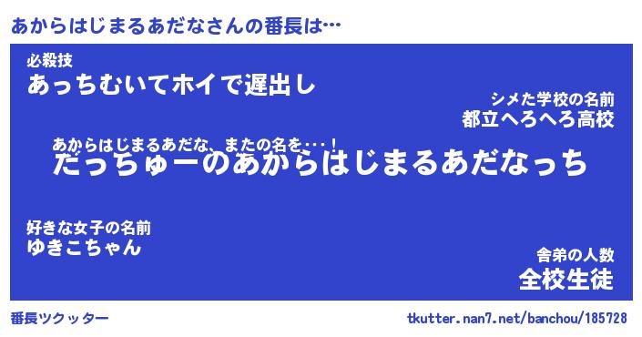 | 意味不明あだ名 | 『ペロリンあからはじまるあだな』 |