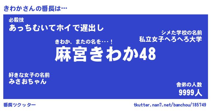 | ヘコむあだ名 | 『きわっふぃ~』『酢こんぶ』 |