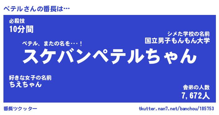 | ポケモン風あだ名 | 『ペテチュウ』『ペテルダネ』 |