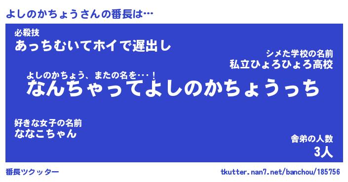 | 伝説のあだ名 | 『伝説のスナイパーよしのかちょう』 |
