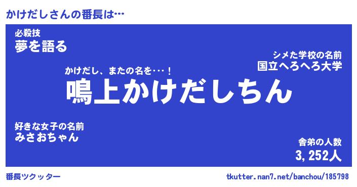 | 意味不明あだ名 | 『ペロリンかけだし』『永久保存かけだし』 |