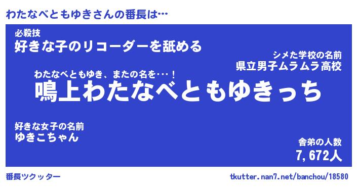 | 肩書あだ名 | 『わたなべともゆき御曹司』 |