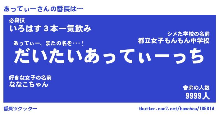 | ヘコむあだ名 | 『あっもー』『なまこ酢』『あっを』 |