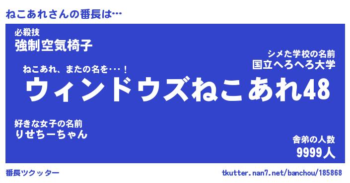| ヘコむあだ名 | 『ねこにー』『豆乳』『ねこを』 |