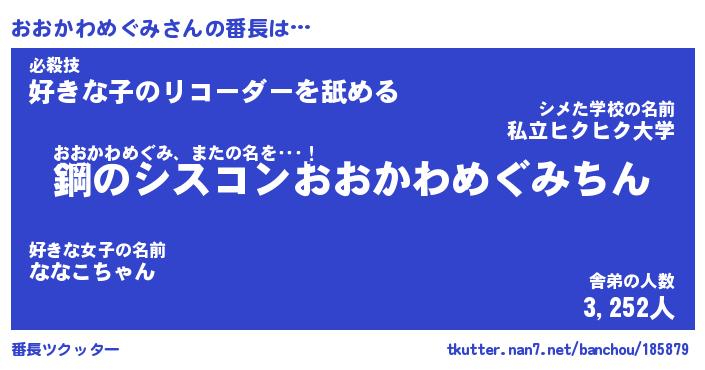 | 肩書あだ名 | 『おおかわめぐみ店長』 |