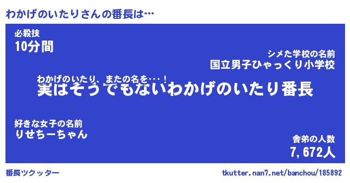 | 2回繰り返すあだ名 | 『わかわか』『わわかか』『ぬるぬる』 |