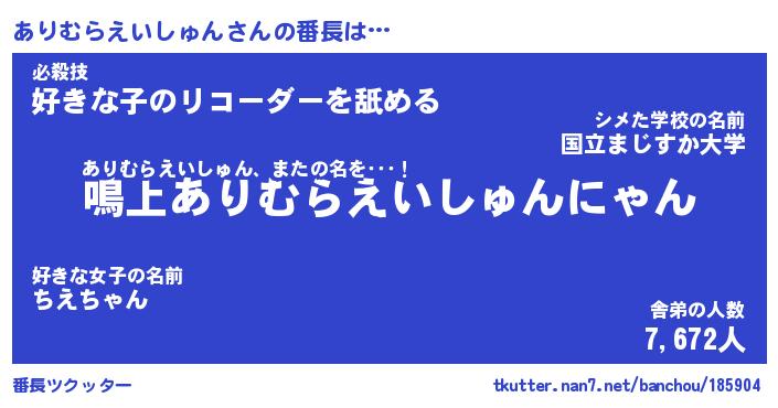 | 意味不明あだ名 | 『ペロリンありむらえいしゅん』 |