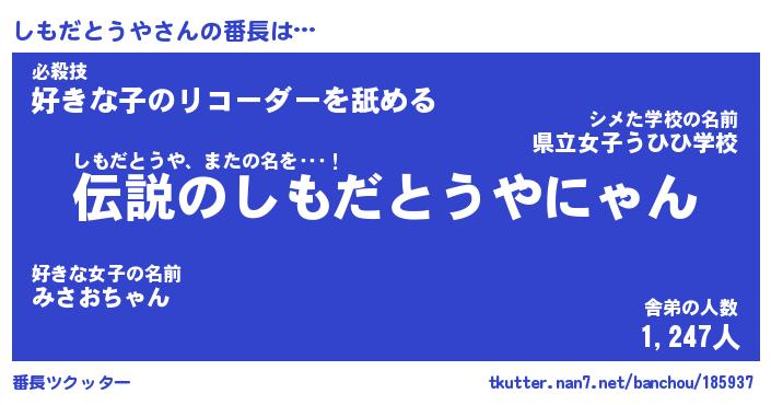 | 意味不明あだ名 | 『ペロリンしもだとうや』 |