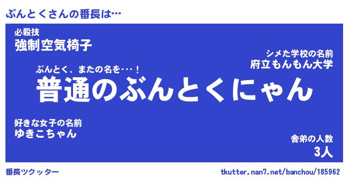 | ポケモン風あだ名 | 『ブンチュウ』『ブントダネ』 |