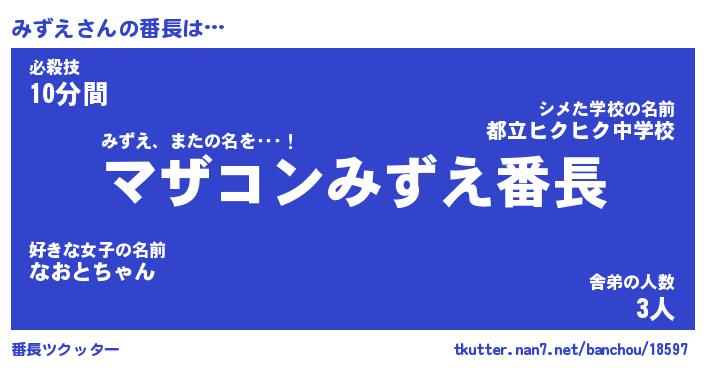 | 伝説のあだ名 | 『封印されしスナイパーみずえ』 |