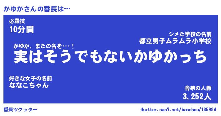 | 伝説のあだ名 | 『封印されしスナイパーかゆか』 |
