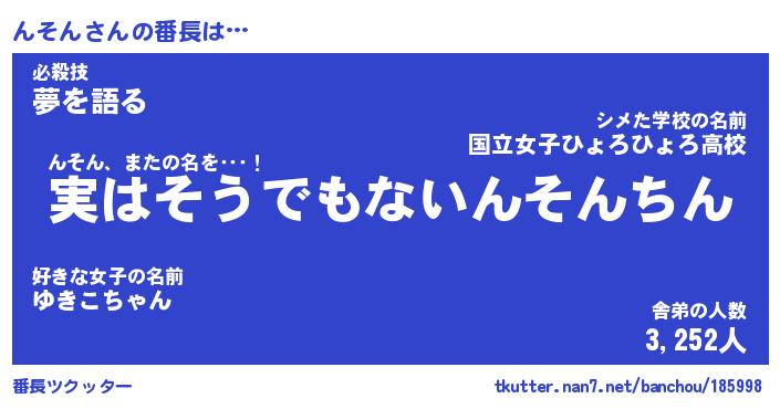 | 意味不明あだ名 | 『ペロリンんそん』『んそんフォーエバー』 |