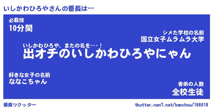 | ヘコむあだ名 | 『いしにゅー』『牛乳』『いしっちょ』 |
