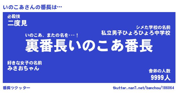 | 意味不明あだ名 | 『ペロリンいのこあ』『永久保存いのこあ』 |