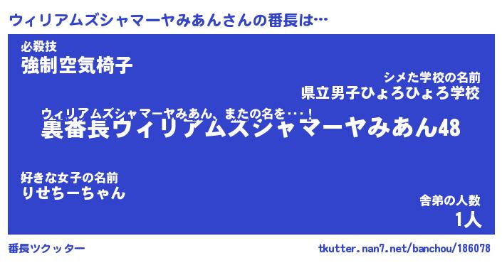| 意味不明あだ名 | 『ペロリンウィリアムズシャマーヤみあん』 |